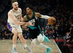 体育资讯1月18日讯 湖人客场挑战开拓者,上半场61-71落后。