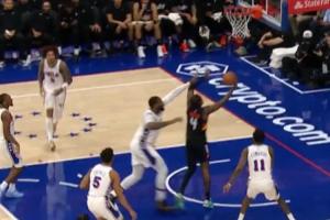 黄雀在后!戈贝尔钉板大帽拒绝乔治 贝利飞身补扣气势十足