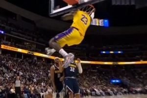 这球很关键~湖人被掘金两记三分追近比分 詹姆斯空切单手抡扣建功