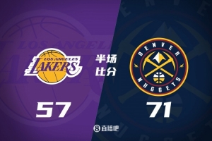体育资讯1月21日讯 NBA常规赛,掘金半场71-57领先湖人。