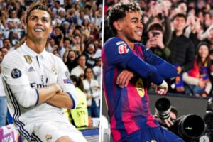 随后亚马尔坐在了场边的广告牌上,双手抱在胸前来庆祝这个进球。这样的庆祝动作与C罗效力皇马时期曾做出的经典庆祝动作极为相似。
