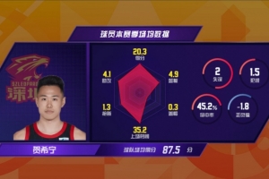 常规赛第二周周最佳球员贺希宁本场比赛发挥出色,他18次出手命中11球,得到赛季新高的29分。末节决胜时刻,贺希宁接管了比赛,他包办了球队最后12分中的10分。身体强壮的深圳后卫先是突破造成付豪犯规打成2+1,随后又在转换进攻中上篮得手。最后1分20秒,贺希宁再次突破打成2+1,当他站上罚球线时,主场球迷高喊起了“MVP”。