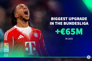 体育资讯12月31日讯 2025年即将结束,《转会市场》也统计了五大联赛各自的年度身价上涨最多球员,奥利塞+6500万最多。