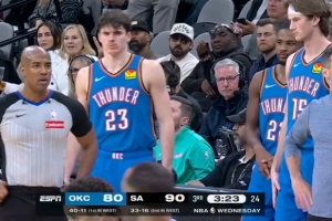 GIF-雷霆三人准备登场 替补席空了