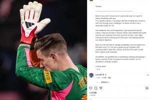 体育资讯02月05日讯 巴萨外租的赫罗纳的门将特尔施特根社媒发文,宣布自己决定接受手术,将伤缺几个月。