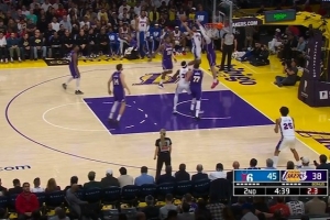没忍住!艾萨克被詹姆斯压哨造成犯规 自己也笑了