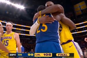 没忍住!艾萨克被詹姆斯压哨造成犯规 自己也笑了