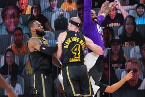 没忍住!艾萨克被詹姆斯压哨造成犯规 自己也笑了