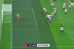 库巴西第52分钟乱战中破门,VAR介入,经过长时间审查后判定越位在先进球无效。