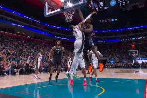 没忍住!艾萨克被詹姆斯压哨造成犯规 自己也笑了