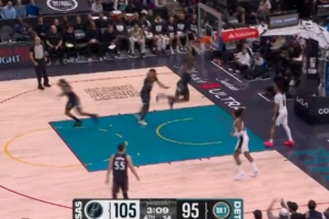 心有灵犀!湖人防守反击 詹姆斯大跨步接里夫斯高抛单臂空接劈扣
