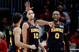 此役,库明加迎来老鹰生涯首秀,他替补出战24分27秒,12中9,其中三分4中3,罚球7中6,得到27分7篮板4助攻2抢断,正负值+16。