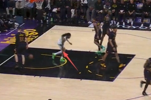 莫兰特在昨天对阵湖人的一个回合中突破上篮,落地后腿部明显有不适,他也用手摸了摸自己的小腿。