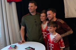 诺伊尔按照传统造访拜仁球迷俱乐部,他在社交媒体上晒出照片,配文:“在埃默特沙姆参加传统的球迷俱乐部探访活动,真是美妙的一天!”