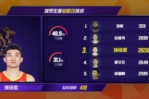 1月4日,2025-2026赛季CBA常规赛第10轮战罢,本轮国内球员在组织端集体爆发,3位球员送出单场11次助攻。其中,浙江方兴渡队后卫孙铭徽单场送出11次助攻,生涯总助攻数升至历史第三位,解锁重要里程碑。