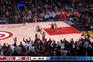 第四节21.3秒,特雷·琼斯在亚历山大-沃克的行进路线上建立了一个宽阔的掩护位置,他的伸出的手臂与对方发生了接触,应吹罚掩护犯规,这是一次漏判;