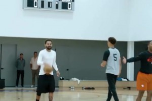 功勋助教!迈克·布朗赛后和库里追梦拥抱 追梦像个孩子抱半天